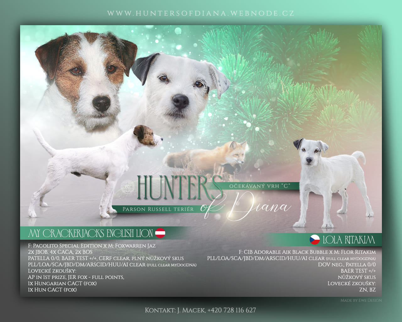 5.1.2025 jsme na svět v naší chs. Hunters of Diana přivítali vrh,,D" Parson Russell terier od nasi fenky Loly. Narodili se 4 psi a dvě fenky( Dodo, Don, Dante, Dino, Didi a Dixi)